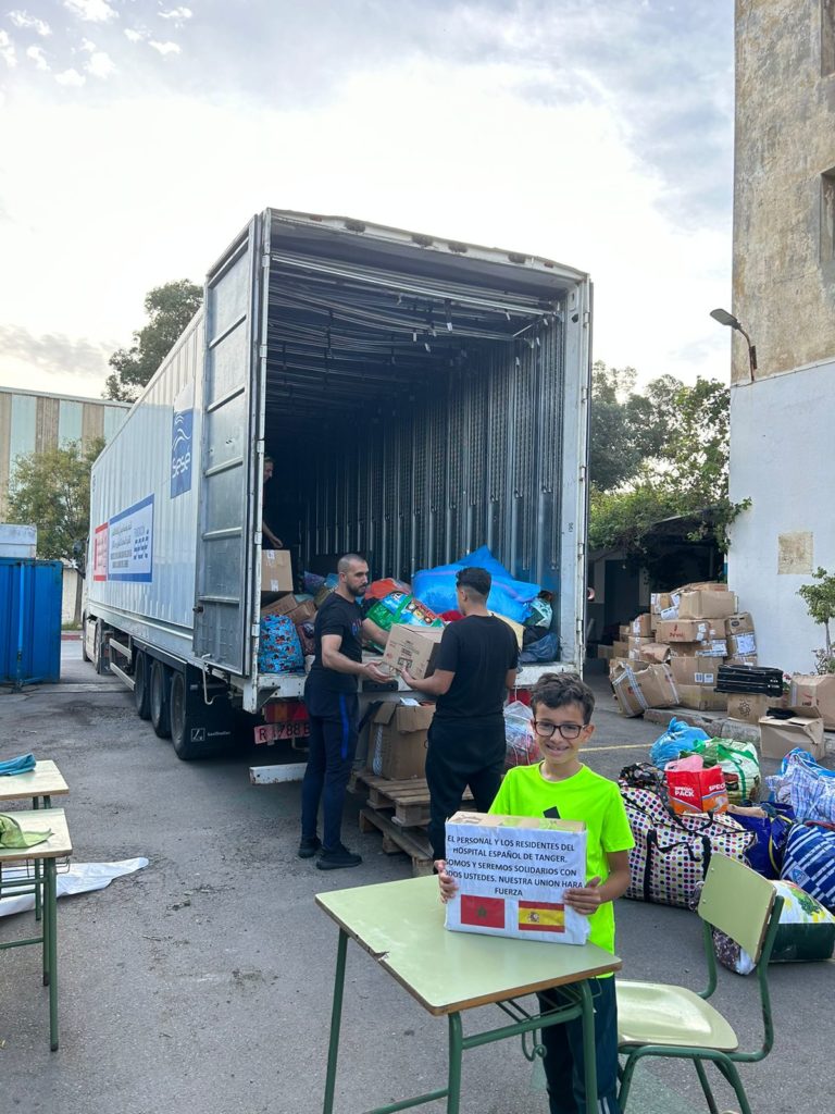 Se ha transportado material y mobiliario escolar, medicamentos donados por un centro hospitalario y cestas de comida. Esta acción se realiza en estrecha colaboración con la asociación Baki Kheir de Tánger, que está activamente involucrada en la gestión de la entrega de donativos en el terreno. Además, esta entidad marroquí está llevando a cabo la construcción de viviendas para las familias que lamentablemente han perdido sus hogares y actualmente residen en tiendas de campaña.